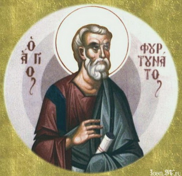 Свети апостол Фортунат Ученик светог Апостола Павла, спомиње се у 1. посланици Коринћанима (16, 17). Он и Ахаик и Стефан однели су прву Апостолову посланицу у Коринт. Проповедао Еванђеље и скончао од мача (по другима скончао мирно).