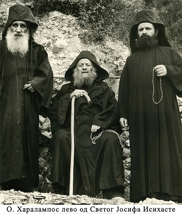 Један од ученика и сарадника недавно прослављеног Светог Јосифа Исихасте (1897–1959) био је отац Харалампос (Галанопулос, 1910–2001), игуман атонског манастира Светог Дионисија. Понтијски Грк по пореклу, рођен је 1910. године у Русији и као десетогодишњи дечак се са породицом преселио у Грчку, где се настанио у северној Грчкој, у селу Аркадико.