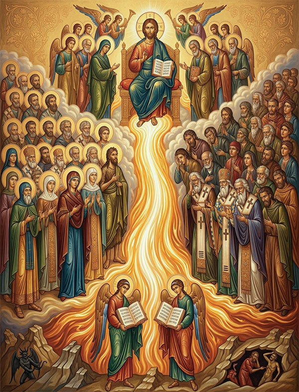 На икони Последњег суда видимо Господа нашег Исуса Христа како седи на престолу. Са Његове десне стране видимо Његове пријатеље, блажене мушкарце и жене који су живели љубављу Његовом. Са Његове леве стране видимо Његове непријатеље, све оне који су свој живот провели мрзећи Га, чак и ако су наизглед били побожни и пуни поштовања. И онда, у средини између ове две групе, исходећи из Христовог престола, видимо огњену реку која тече ка нама. Каква је то огњена река? Да ли је то средство мучења? Да ли је то енергија освете која долази од Бога са циљем да смрви Његове непријатеље?