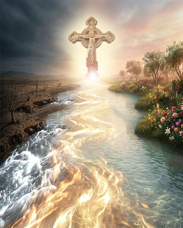Не, ништа од тога. Ова огњена река је река која „излажаше из Едема натапајући врт, и оданде се дијељаше у четири ријеке“ (Пост. 2:10). То је река благодати Божије која је напајала светитеље Божије од самог почетка. Речју, то је изливање љубави Божије према Његовим створењима. Љубав је огањ. Свако ко воли, то зна. Бог је Љубав, Бог је и Огањ. Огањ прожима све оне који по себи нису огањ, топећи нечистоту и просветљујући све оне који су по себи ватра. „Јер је Бог наш огањ који спаљује“ (Јев. 12:29).