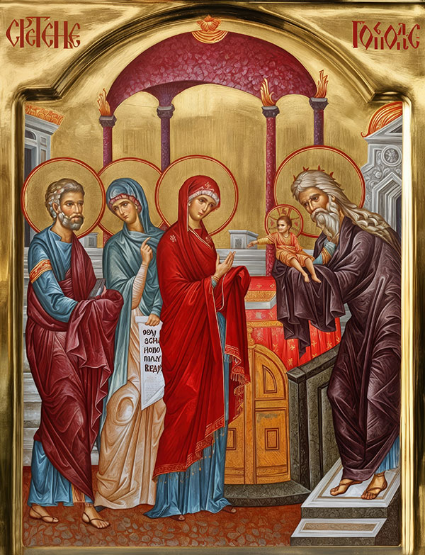Нека би нас Он, са Пресветом Богомајком, Свети Симеоном Богопримцом и свима Светима, све водио из овога у онај свет и увео у Небеско Царство. Да Га тамо и ми вечно славимо са свима Светима, испред којих и на челу којих стоји Пресвета Богомајка, Којој нека је част и слава, јер је родила Господа Христа. Она – Безгрешна и Свесавршена, спасава нас од смрти, греха и ђавола. Амин.