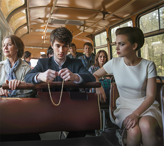 У краткој сукњи, са модерном фризуром и са сјајним кармином, оштро се издвајала од осталих путника као да је намерно тражила свачију пажњу. Њене црне, јако нашминкане очи гледале су ме нетремице. Видевши да сам је приметио, благо се осмехнула. И у том тренутку сам јасно схватио да је разлог што сам се осећао лоше - управо она. Гледали смо се око пар секунди, али она није помислила да скрене поглед. И даље ме пажљиво гледала у очи и смејући се дрско, као да је рекла: „Да, то сам била ја”.