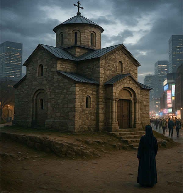 Кад се свет убрза и почне да хита ка својој пропасти, манастири постају камене барикаде против заборава, самоће и бесмисла. У времену када се све мери профитом, а и душа би, да може, била претворена у услугу на менију, некоме смета да постоје места где човек није купац него покајник, где се не троши него спасава. Али да ли су манастири застарела прошлост коју треба „освежити“ или последње уточиште непроменљивог, тишине и светлости? И ако је дух оно што нас чини људима, зашто се толико журимо да га заменимо пепелом?