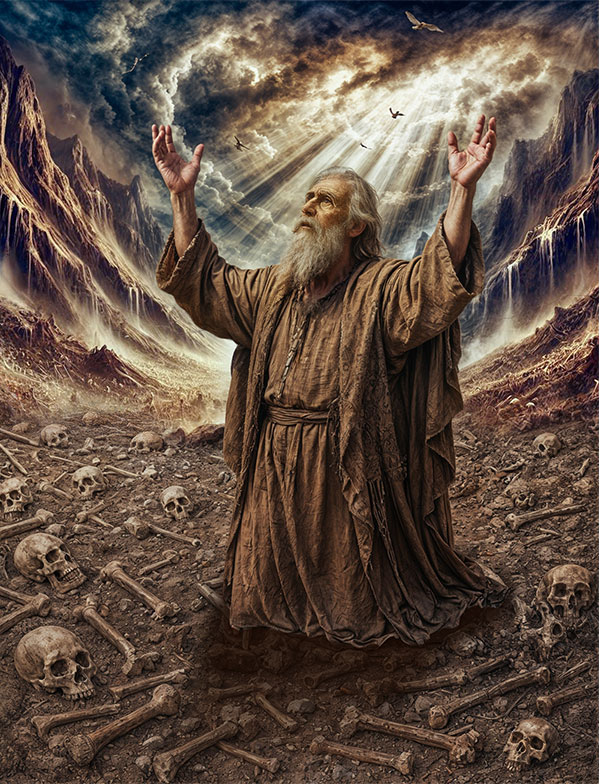 Једна од најпознатијих и најпотреснијих визија из Књиге пророка Језекиља јесте она о долини пунoj сувих костију.