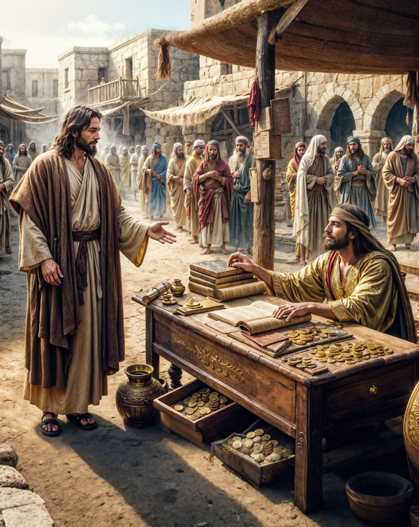 Пре него што је Исус ушао у Закхејеву вилу, направио је сличан „инцидент“ у Капернауму. Позвао је Левија (будућег Светог апостола и јеванђелиста Матеја) да му буде ученик. Матеј није био „кум“ као Закхеј, већ оперативни извршилац, „ситан криминалац“ који је седео на царинарници и непосредно тлачио људе. Он је био тај који вам претура по стварима, који вас понижава и узима последњи новчић под будним оком стражара.