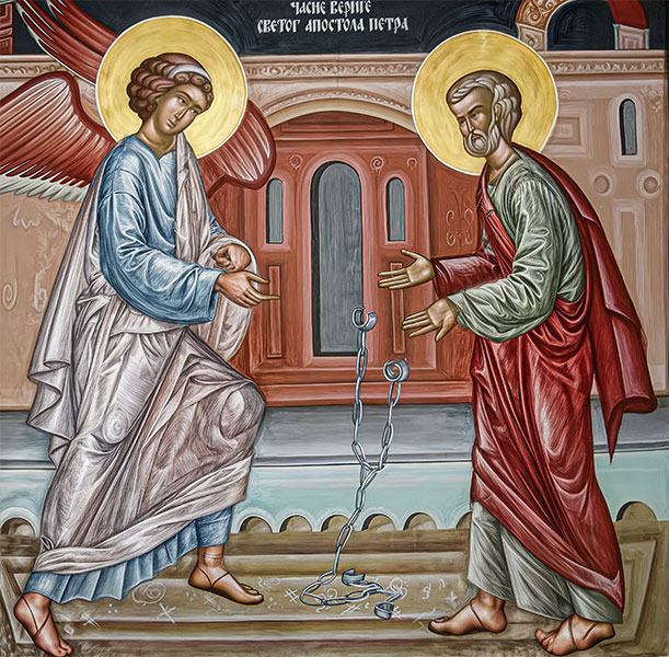 Овај празник нас враћа у време када је цар Ирод Агрипа бацио апостола Петра у тамницу под најстрожу стражу. Везан тешким металним оковима – веригама – Петар је чекао суђење и извесну смрт. Чувала су га четири одреда војника. Шеснаест наоружаних људи чији је једини задатак био да спрече једног старца да побегне. Толико страха од човека који није имао ни мач ни војску. Само реч. Само веру.