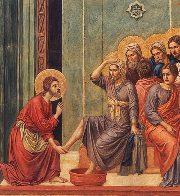 Најупечатљивији пример Његовог смирења је прање ногу ученицима – посао најнижег слуге у то време. Христос је тиме показао да истинска величина није у власти и моћи, него у љубави која служи. Крст је коначни израз тог смирења. Он није узвратио на увреде, није се бранио пред Пилатом, нити је сишао са Крста иако је могао. Уместо тога, изговорио је речи које одјекују кроз векове: „Оче, опрости им, јер не знају шта чине“ (Лк. 23, 34). Његово смирење није било знак слабости, већ врхунац силе љубави.