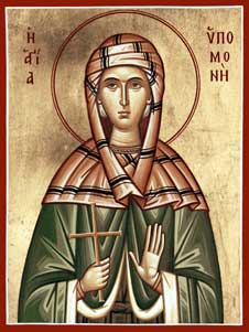 Узносећи хвалу благородној Царици, Ипомонији Праведној, благочестивој голубици која одлетевши из светске метежи усели се у рајске обитељи, непресушне љубави, испосништва и смерности, вичемо ти :раскивај молитвама твојим окове безакоња, о Царице.
