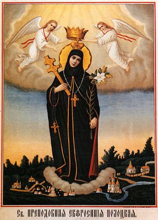 Света девојка се покори вољи својих родитеља и крену у Суздаљ; али док још беше на путу, њен заручник умре. Стигавши у град Суздаљ, она оде у тамошњи женски манастир Пресвете Богородице Влахернске и замонаши се добивши име Ефросинија. И ту она живљаше: показујући велику послушност према свима монахињама, силно изнуравајући тело своје и просвећујући душу своју, и творећи сваку врлину. И због тако усрдног и неуморног подвизавања у врлинама она доби од Бога дар пророштва; и често она поучаваше све Еванђелском речју, и исцељиваше многе од разних болести. У време пак најезде нечестивог Батија она молитвама својим сачува манастир од разорења. Престави се блажена Ефросинија у вечни живот двадесет петог септембра 1250. године, у исти дан у који раније би замонашена.