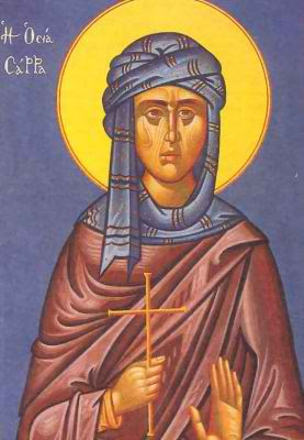 Света преподобна Сара Мисирска Египћанка, живела и подвизавала се у Египту. Као девица отишла на подвиг и шездесет година подвизавала се на обали реке Нила, недалеко од Александрије. Примером свог подвижничког богоугодног живота привукла многе женске к монашком животу. Упокојила се у Господу 370 године.У књизи "Рај Отаца" пише о преподобној Сари ово: Једном два велика старца и отшелника кренуше са Пилусијске Горе к преподобној Сари. Путујући, они збораху између себе: Хајде да понизимо ову старицу. - Када стигоше к њој, они јој рекоше: Пази да ти се разум не погорди и ти рекнеш: гле, отшелници долазе к мени која сам жена. - Преподобна им од говори: По природи јесам жена, али не по разуму. - У истој књизи пише за њу да је једном приликом рекла: Ако се помолим Богу да ми да обавештење о свим људима, наћи ћу се плачућа пред вратима свакога од њих. Него је боље да се помолим да ми срце буде чисто са свима. - А имала је преподобна увек у себи сећање на смрт, па је говорила: Пођем да ставим ногу своју на лествицу да се уз њу попнем, и одмах пре но што се почнем успињати, стављам смрт пред очи моје. - Причају за аму (мајку) Сару да је тринаест година била силно узнемиравана од демона блуда, и никада се није молила да та борба отиде од ње, него је само говорила: Боже дај ми снаге. А када је једном силно нападе дух блуда, она пође у келију своју да се помоли, не подајући се искушењу због страха Божјег и подвига. Тада јој се телесно јави дух блуда и рече јој: Саро, победила си ме. - А она одговори: Не победих те ја, него Господ мој Христос. - Преподобна Сара беше толика подвижница да је шездесет година седела на реци Нилу и није се освртала низ реку да види ко долази и одлази.