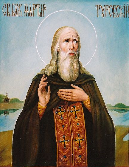 Свети блажени Мартин Живео у дванаестом столећу у граду Турову, при манастиру светих кнезова Бориса и Гљеба, и служио код епископа као кувар. У старијим годинама примио монаштво и проводио живот у усамљености и молитвеним подвизима. У болести јавили му се свети кнезови Борис и Гљеб и чудесно га исцелили. После тога блажени поживе још годину дана, па онда мирно отиде ка Господу.