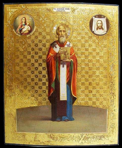 Свети Михаил, епископ синадски Овај свети Михаил, као што је носио име Првоначелника небеских Сила, тако је и савршен анђелски живот проводио девственом чистотом и осталим врлинама. Он од раног детињства посвети себе на службу Богу, и у младим годинама се замонаши заједно са светим Теофилактом Никомидијским у дане свјатјешјег патријарха Тарасија, који их обојицу и посла у манастир на обали Црнога мора. Подвизавајући се тамо у монашким трудовима, они обојица веома успеваху у врлинама, и молитве њихове стекоше велику силу пред Богом.