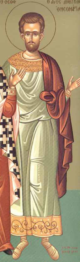 Свети новомученик Димитрије хијонски Био родом са острва Хијоса; пострадао мученички за Господа 1802 године. Као младога агарјани га беху на силу потурчили, но кад одрасте одрече се муслиманства и исповеди Хришћанство и зато претрпи мученичку смрт у Цариграду отсецањем главе.