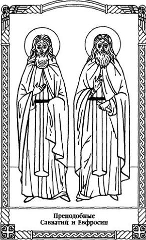 Свети преподобни Саватије и Ефросин Тверски Преподобни Саватије основао Саватијевску пустињу, на 12 врста од града Твера, и ту проводио строг подвижнички живот. Да би изнурио тело, носио вериге. Упокојио се у првој половини петнаестог века. Његов достојни ученик и подражаватељ био је свети Ефросин; провео у пустињи 60 година; удостојио се од Бога дара чудотворства. Упокојио се у другој половини петнаестог века.