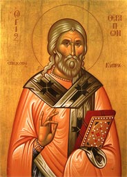 Овај свети Терапонт беше монах, и би удостојен епископског чина на острву Кипру. У време гоњења хришћана од стране незнабожаца он јуначки пострада за свету веру и доби венац мученички од Господа Христа. Његове свете мошти најпре почиваху на Кипру и чињаху чудеса, но затим бише пренете у Цариград, и то са следећег разлога: када Агарјани, по попуштењу Божјем, у време цара Никифора године 806. пустошаху многе источне покрајине и одвођаху људе у ропство, они се приближише и острву Кипру са намером да с њим учине оно што и са осталим покрајинама. Тада се свети Терапонт јави црквењаку своје цркве и рече му: Иди брзо, узми моје мошти и носи их у Цариград, јер непријатељи крста Христовог хоће да дођу на ово острво и да га опустоше; реци о томе и осталим хришћанима да се склоне одавде пре најезде агарјанске.Црквењак одмах обавести хришћане о овом светитељевом јављању и наређењу. Они се брзо спремише за пут, а начинише и нови кивот, положише у њега чесне мошти светог Терапонта и, узевши их са собом, укрцаше се у лађу и кренуше на пут. Када већи део пута превалише, и већ се приближаваху Цариграду, настаде бура на мору, од које се сви уплашише и узнемирише. Тада из кивота светитељевог стаде излазити диван и јак мирис као неки танак облак, и напуни не само лађу него се разли и по мору на три стадије око лађе, и одмах се бура утиша од тог предивног и неисказаног миомира. А црквењак, који са великом љубављу чуваше чесне мошти светитељеве, чу глас из кивота где га по имену зове. Чуше то и остали како свети Терапонт по имену зове чувара својих моштију. Тада сви са страхом и побожношћу приступише кивоту, желећи да виде светитељеве мошти. Завиривши у кивот, они угледаше где миомирисно миро тече из чесних моштију свештеномученикових, и испуни сав кивот. Онда хришћани који беху на лађи, захватаху то миро у стаклене судове, и са вером се помазиваху њиме на исцељење душа и тела својих.Стигавши у Цариград, они положише мироточиве мошти светог свештеномученика Терапонта у цркви Пресвете Богородице. То би 806. године, за царовања Никифора I. После неког времена, због многих чудеса која биваху од тих чесних моштију, хришћани подигоше засебан храм у име светог свештеномученика Терапонта, и у њега пренеше и положише свете мошти угодника Божјег.Од многобројних чудеса, учињених светим Терапонтом, мало их је записано. Овде ћемо навести нека. Један човек, по рођењу Талијан а по имену Флорин, који паћаше од легиона нечистих духова, избави се од ђаволског насиља моштима светог мученика Терапонта и врати се дому свом потпуно здрав. И он казиваше како виде неки танан дим, врло мирисан, где излази из мученикова кивота, и легион, не могући подносити тај миомир, побеже као да га неко бије и гони.Анастасије, житељ града Виксиније, много година имао је суху руку, која му висијаше из рамена као мртва и неупотребљива. Дошавши у цркву светог Терапонта, он доби исцељење уочи Богојављења: јер му рука очврсну и постаде здрава, као и друга, и он пред свима узе исцељеном руком суд и напуни га освећеном водом. Видећи то, сви присутни прославише Бога, прослављеног у светом угоднику свом Терапонту.Неки човек, по имену Георгије, десетар у војсци, пакошћу ђавољом лице му беше окренуто уназад, и беше слеп на једно око. Молећи се на мучениковом гробу, тај Георгије брзо доби исцељење: јер се лице његово поврати на сво
