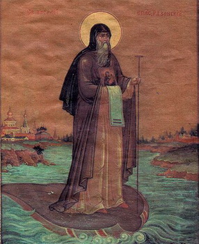 Свети Василије, епископ Рјазански Најпре био епископ у граду Мурому. Управљао црквом ревносно и мудро. Но буде оклеветан да води нечист живот. Муромци реше да протерају владику. Владика се није правдао. Провевши сву ноћ у молитви пред Муромском иконом Божје Матере, владика одслужи ујутру свету литургију. Затим у присуству огромне масе народа, он дође на реку Ок, распростре мантију на води, прекрсти се, стаде на мантију и отплови низ реку ослањајући се на жезал и држећи на прсима Муромску икону Божје Матере. То порази Муромце, и они дошавши к себи стадоше дозивати светитеља да се врати, али већ беше касно. Свети Василије доплови у Рјазањ, и стаде тамо епископовати, доневши новој пастви своје састрадално срце, своју мудру делатност и своју светлу проповед. Богомудро руководећи своју нову паству, свети Василије се упокоји 1295 године. А 1609 године бише обретене свете мошти његове, и почивају у Рјазанској Рождественској цркви, где се налази и икона која преставља путовање светог Василија по реци Ок.