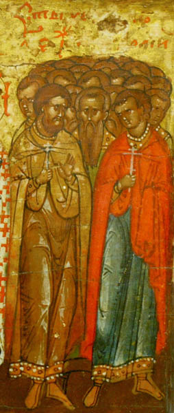 Пошто се тако посаветоваше, оба стражара уђоше унутар тамнице и припадоше к светима говорећи: Господо наша, слуге истинитога Бога Христа, примите и нас међу вас, јер и ми верујемо у Господа Исуса Христа, возљубившег вас, и молимо вас, помолите се Њему за нас, да нас удостоји удела с вама. - Свети се обрадоваше њиховом обраћењу к Богу и целиваше их, говорећи: Ви сте браћа наша, јер вас Господ наш призва к исповедању пресветог имена Свог, и даће вам подједнаку награду с нама, као и онима који у једанаести сат дођоше у Његов виноград (ср. Мт. 20, 1-16).