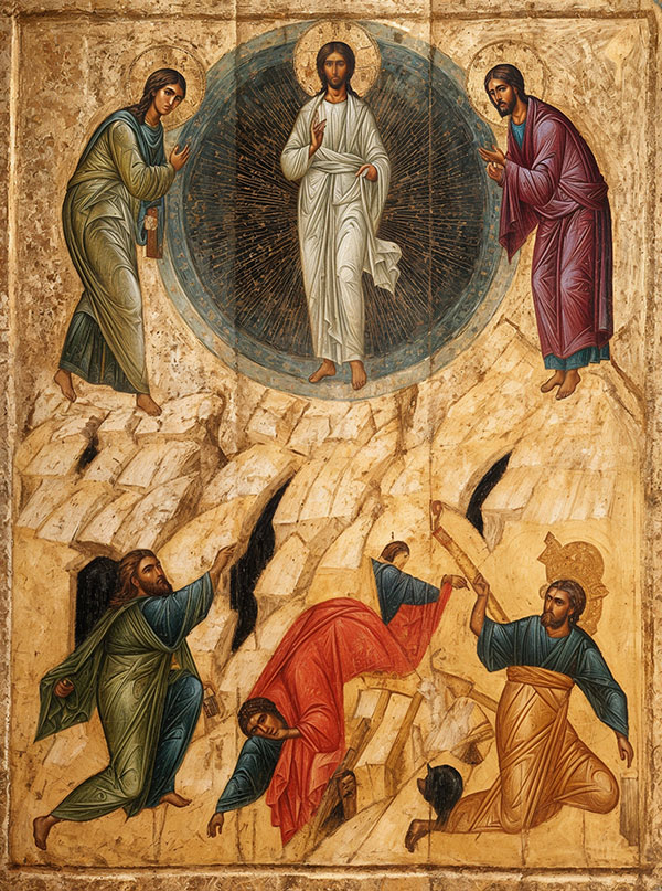 Ученици су били потресени тим призором. Апостол Петар је узвикнуо: „Господе, добро нам је овде бити…“ – желео је да се тај тренутак никада не заврши, да та светлост остане, да се више не силази у долину. Али – Преображење је трајало кратко. Господ је сишао са горе, и поново се нашао међу људима, суочен са болестима, демонским силама, потребама, плачем. А затим је дошао и Гетсимански врт. И Голгота.