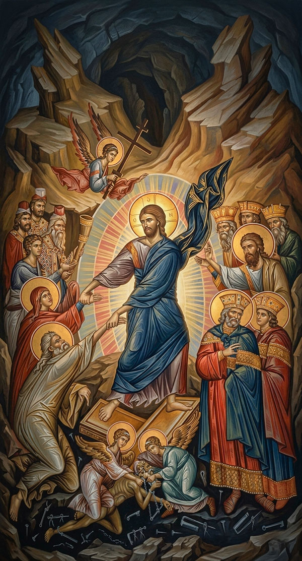 Он постаје један од нас у свему – чак и у смрти. Када је Христос издахнуо на крсту, Његово тело је положено у гроб, али Његова божанска присутност је, попут незаустављиве муње, продрла тамо где никада ниједан трачак светлости није стигао. Он силази у ад не као поражени сужањ, већ као Победитељ који упада у непријатељско утврђење. То је тренутак када љубав одлучује да оде на саму ивицу постојања како би пронашла оно што је изгубљено. Тамо где је била крајња тачка човека, почиње највеће дело Божије.